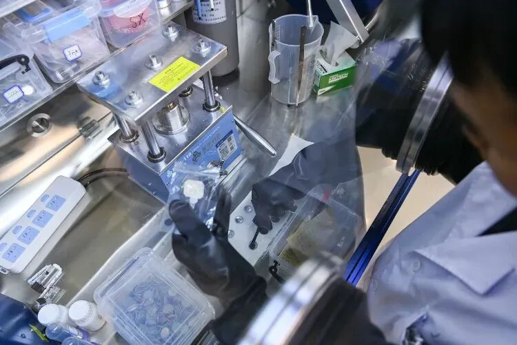 ▲研发人员对镁电池正极、负极和电解液关键材料进行实验
