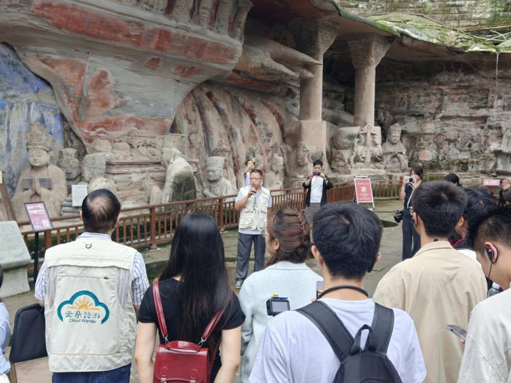 “大足石刻是活脱脱的‘气象历史档案’,选它,就是要让大家看到:气候变化不是抽象曲线,而是释迦牟尼脸上的裂纹、千手观音掉落的金箔。活动特别邀请专家介绍石窟文化和气象科技知识,以科普为切入点,唤起学子们保护文物的责任感。”