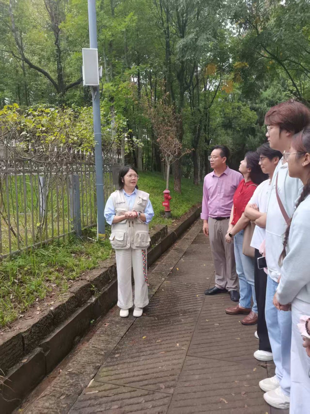 ▲文博馆员、监测站负责人冯雪梅讲解微环境气象监测站运行过程及作用
